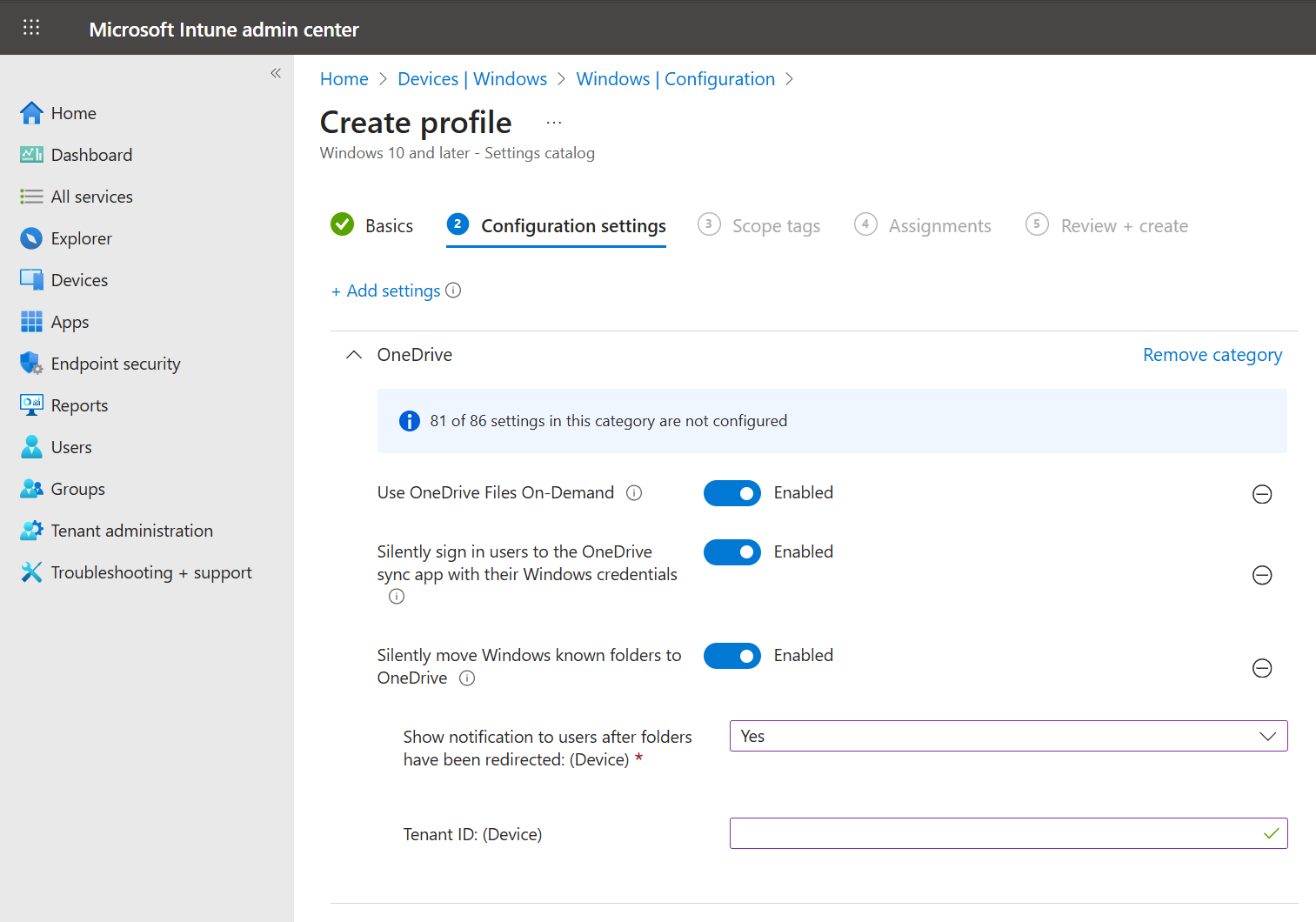 Here is an example of this minimal configuration in Intune. Choose just these settings from the Settings Catalog and enable them: