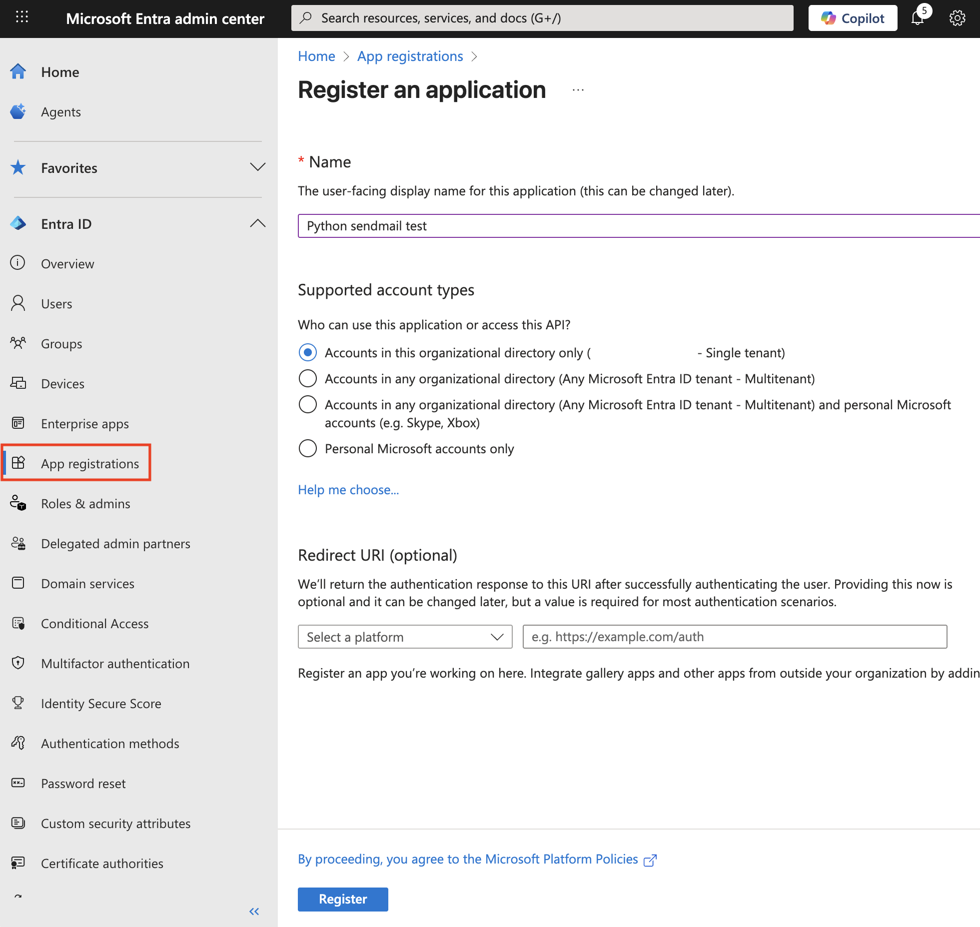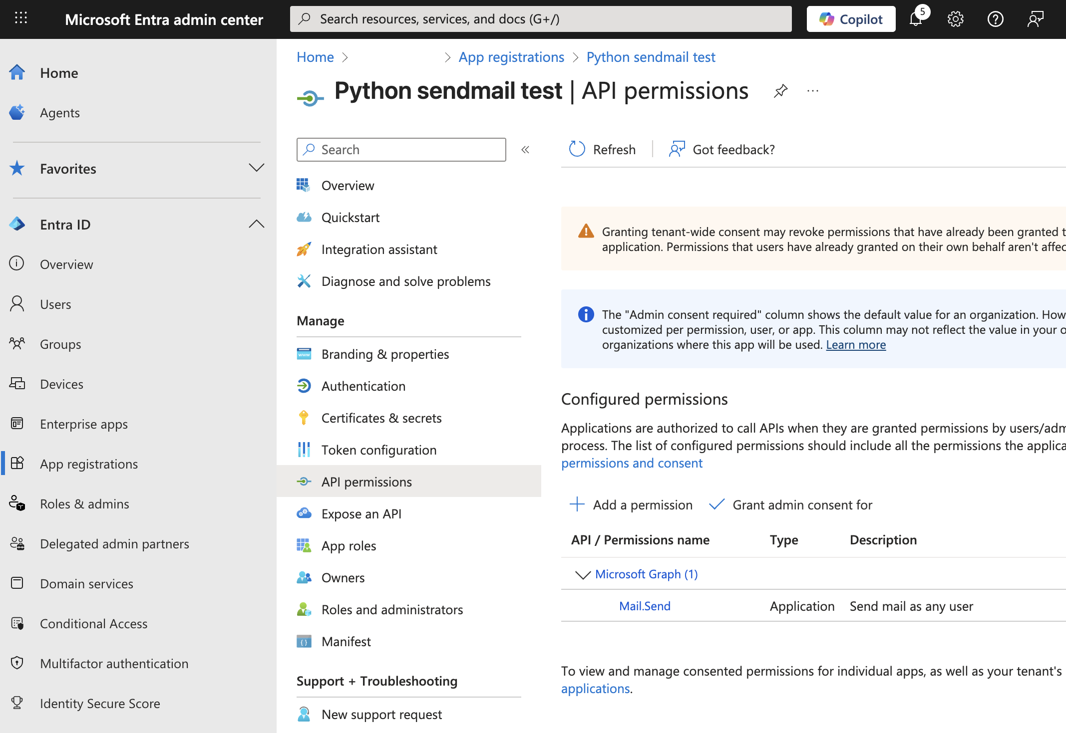 Let’s go through a quick Python example of sending an email. We’ll get the app registration created, then scope down access to members of a security group. Then, we’ll send a message with a basic example, before getting everything running in a Podman container.
