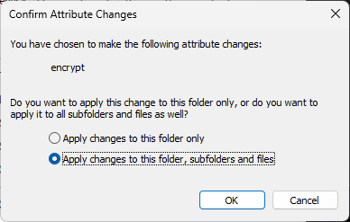Then, Windows will encrypt the directory. This may take a while depending on your machine and the directory’s contents.